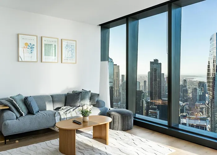 The spacious Sky-High Level 56 Views, Pool, Gym, Sauna Melbourne apartment is located just 1.6 km from the Eureka Skydeck and 25 minutes' walk from the Old Treasury Building. Guests can use a fitness centre and an indoor swimming pool while staying in proximity to the urban park "Flagstaff Gardens".